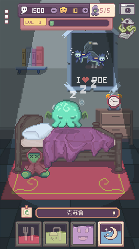 克苏鲁宠物2手游下载是一款养成克苏鲁的宠物养成游戏,在前作的基础上优化了养成系统,画面也变成了彩色像素。作为克苏鲁的守护者,玩家将参与唤醒这位古老生物沉睡的力量,并通过一系列任务解锁装饰品,使克苏鲁焕发新生。游戏内提供不同风格的宠物服饰,克苏鲁成长后外观上也会发生改变,让玩家在照料宠物的过程中享受克苏鲁成长带来的成就感。游戏内自带各种小游戏,玩家需要平衡克苏鲁的吃喝玩乐和健康状态,成功将其抚养长大。
