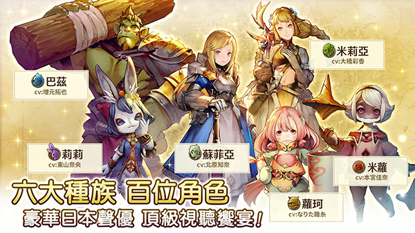 1、卡拉邦台服游戏中为玩家们分别设计了六大种族,每个种族有着众多可以获得的角色。