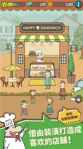 1、快乐三明治咖啡店最新版游戏是一款经营类游戏,玩家将扮演一名咖啡店老板,管理和发展自己的店铺;