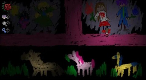 结局概述:Garry和Ib在寻找钥匙的房间内精神崩溃,Mary独自逃走却迷失于黑暗中。