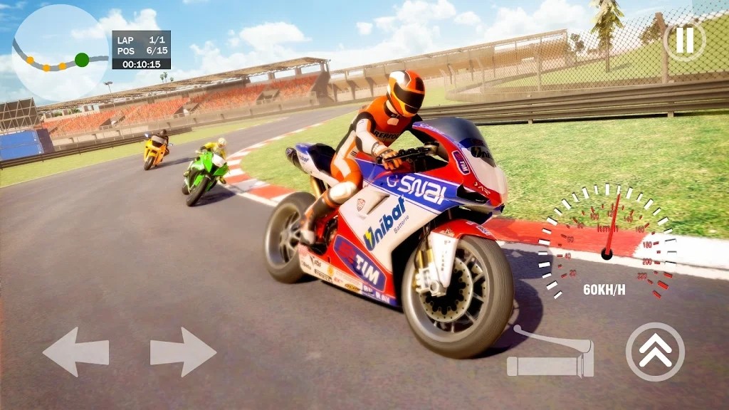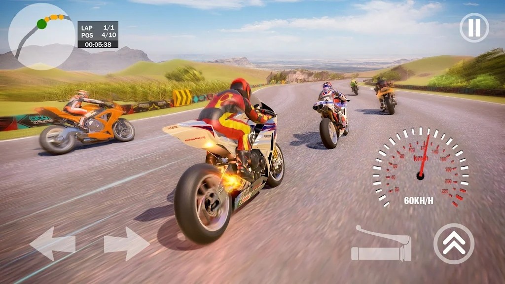 3、易于学习的操作模式,可以轻松上手,顺利控制摩托车冲刺赛道。