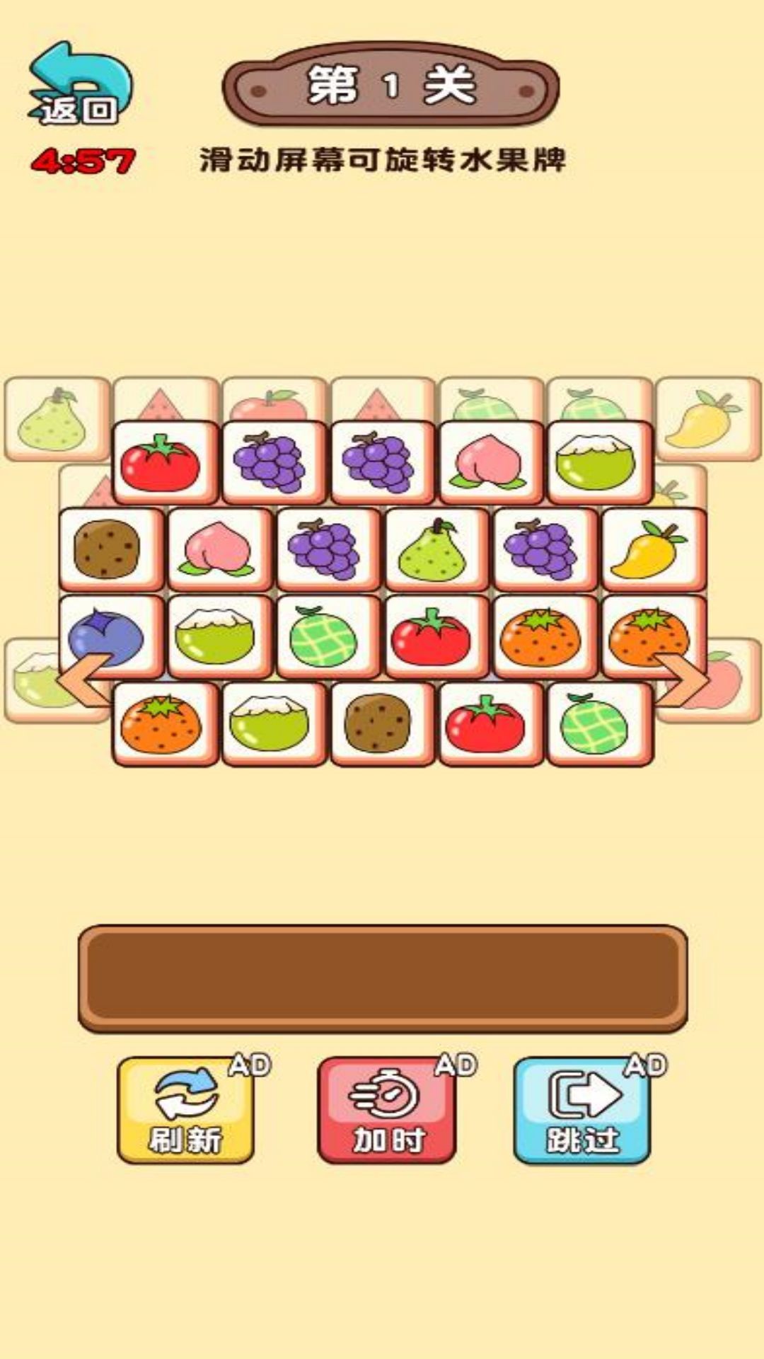 3、通过连接相同的水果来完成消除目标,并通过精心设计的关卡。
