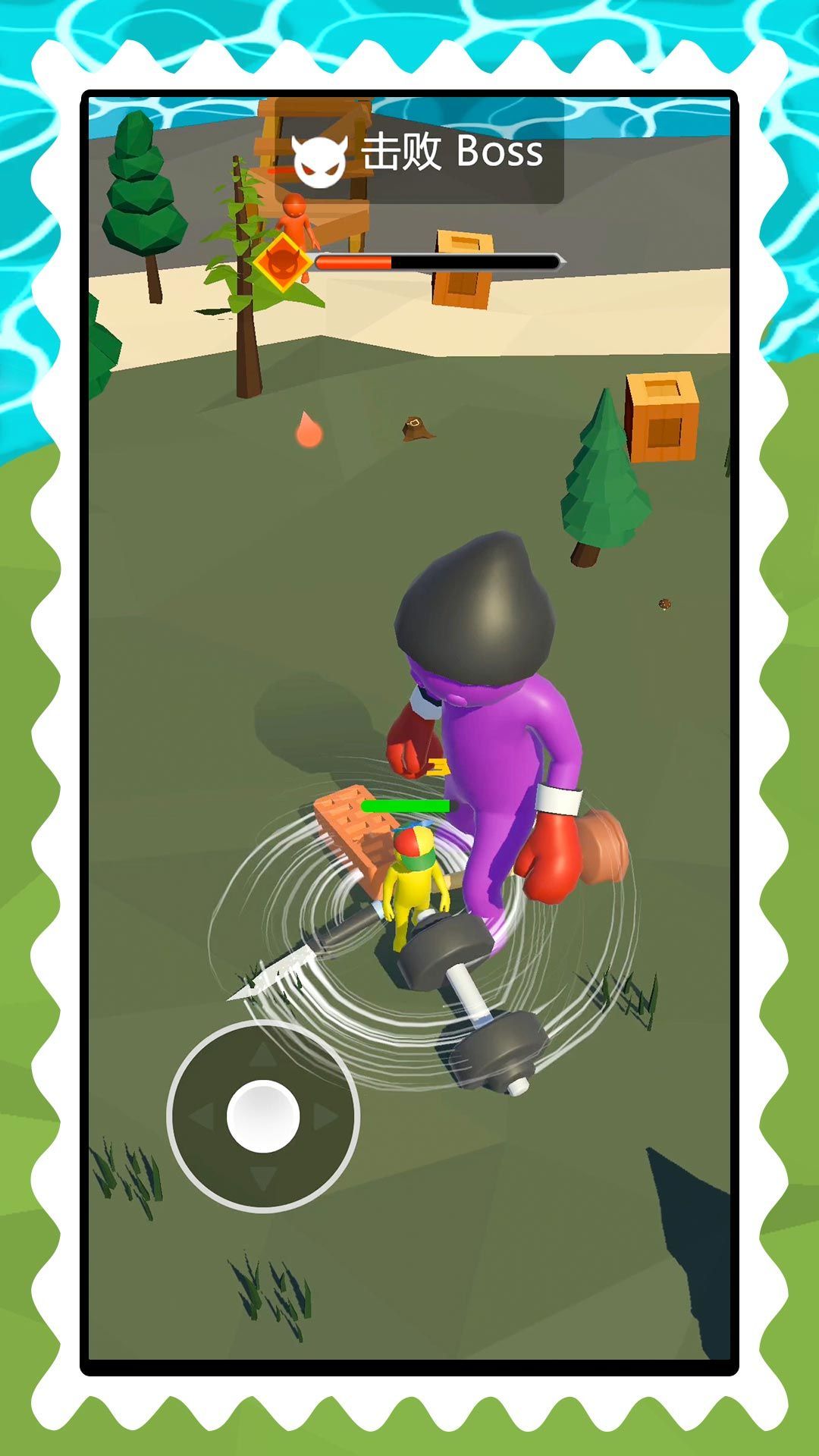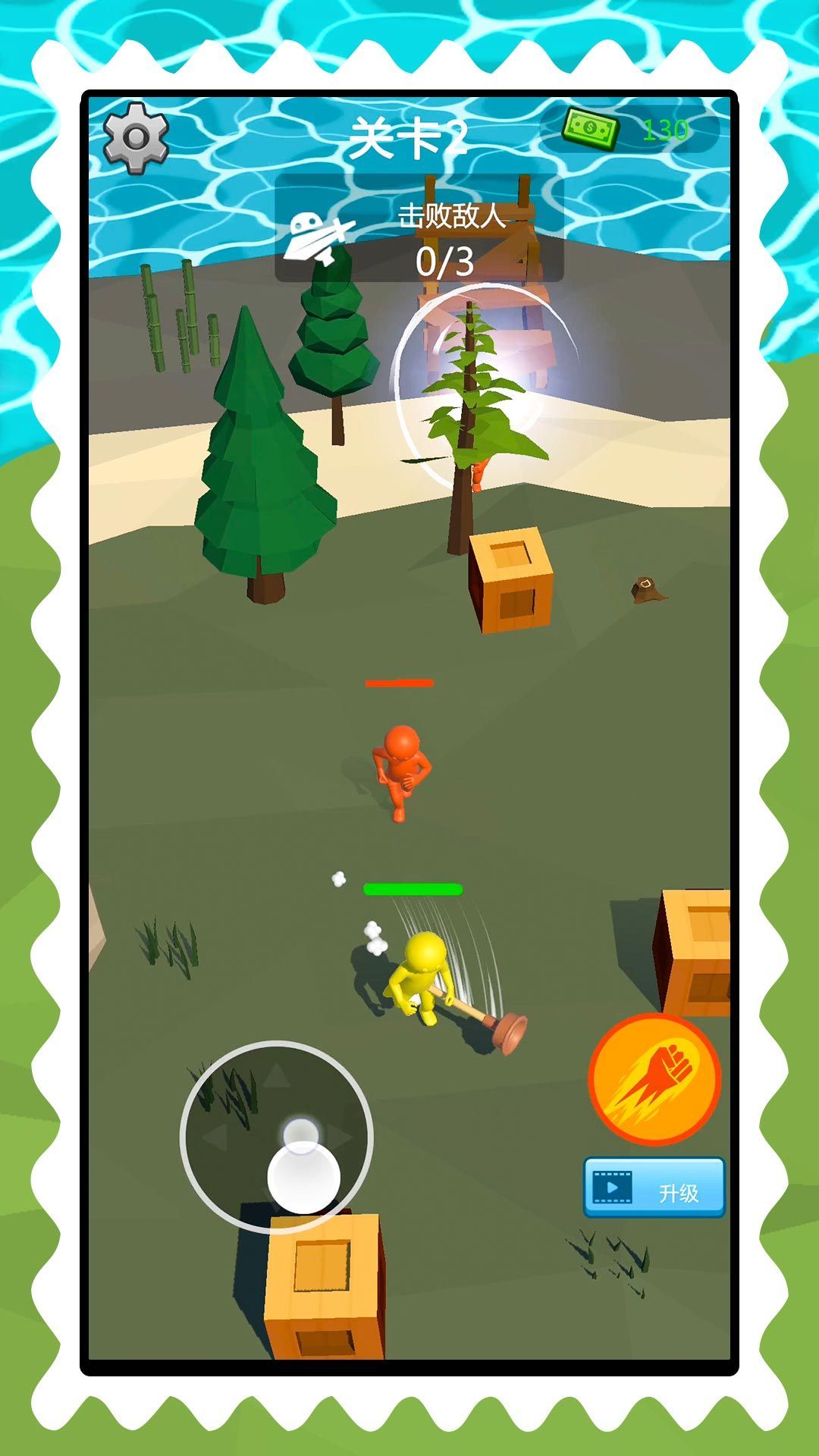 2、游戏有不同的关卡和不同的地图场景,必须使用可用的道具打败对手。