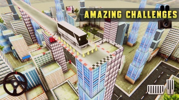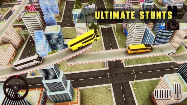 1、玩家可以自由选择巴士车型,驾驶巴士在城市街道上进行驾驶和特技表演。游戏操作简单,通过虚拟摇杆和按钮进行加速、刹车和转向控制;