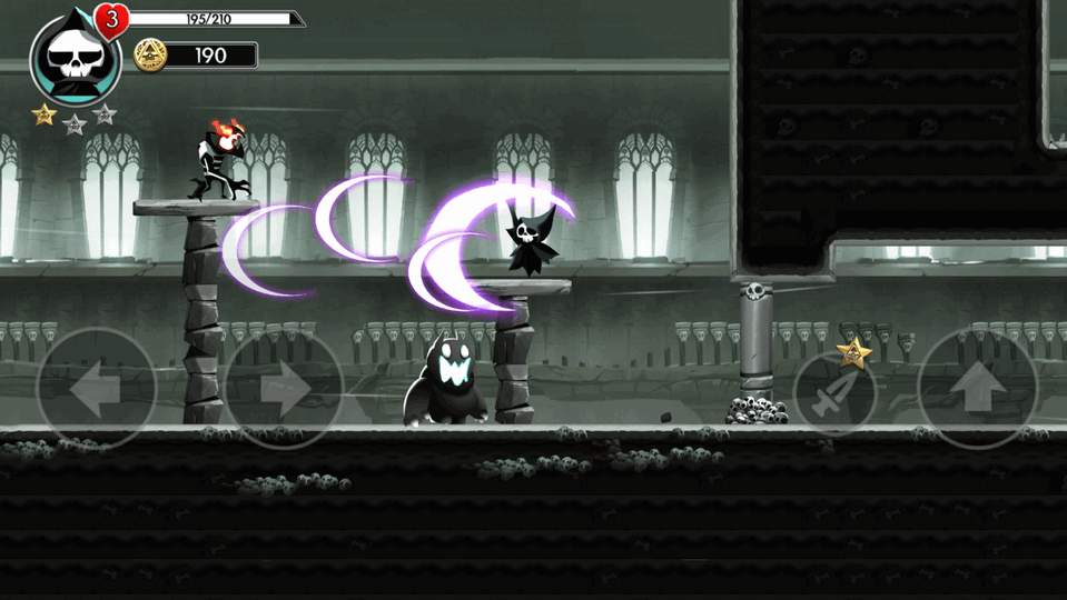 1、在这里控制死亡角色手持死亡之镰,踏上充满危险危机的黑暗之路,征服一个危险的障碍。