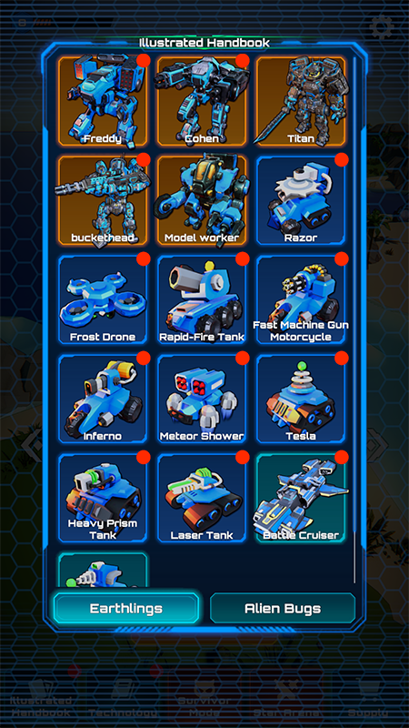 4、游戏设定中包括3名各具特色的指挥官、10种人类单位、6种外星虫族单位以及21个随机技能,为您带来无尽的变化和挑战。