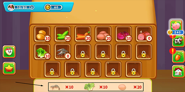 3.选择制作食物所需的材料(如果材料不够,需要自己种植或养殖!);