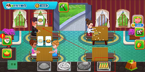 5.制作完成后,将食物拖到顾客面前即可获得金币(金币可以用来购买种子,家禽可以用来升级)。