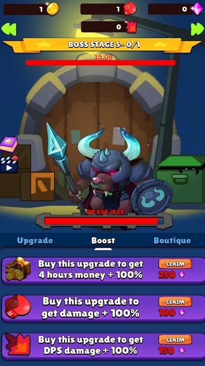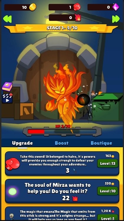 2、角色升级实力大增:目前游戏设有五个可升级角色,升级后实力与威力显著提升,增强游戏挑战性。