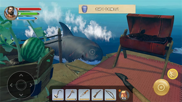 你也可以收集树木来修理船只,但在这个过程中要小心大白鲨。