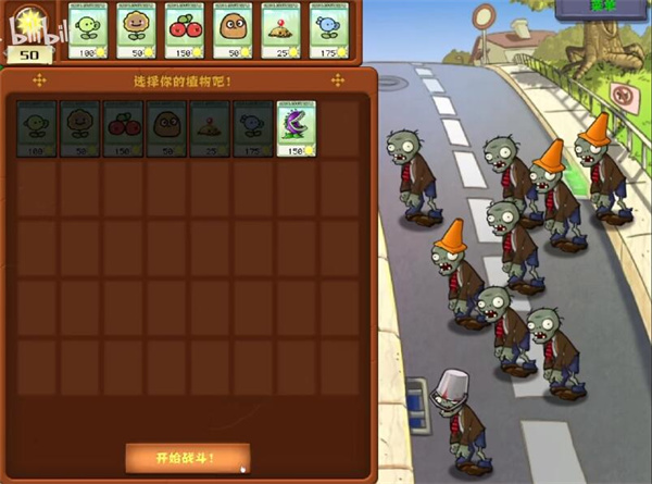 2、在关卡挑战之前需要选择不同的植物出战,组成自己最强的植物阵容,对抗所有来犯僵尸;
