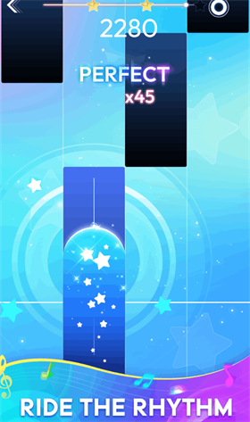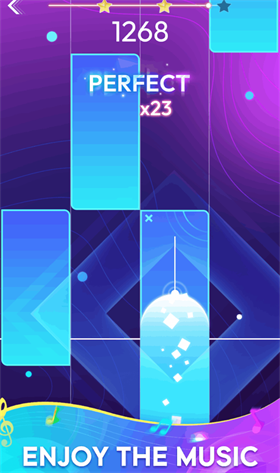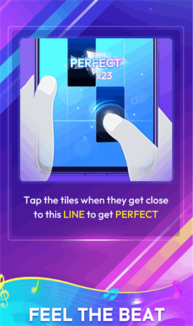 2、游戏节奏紧凑,随着音符的掉落,玩家需快速反应,挑战手指灵活度和节奏感。