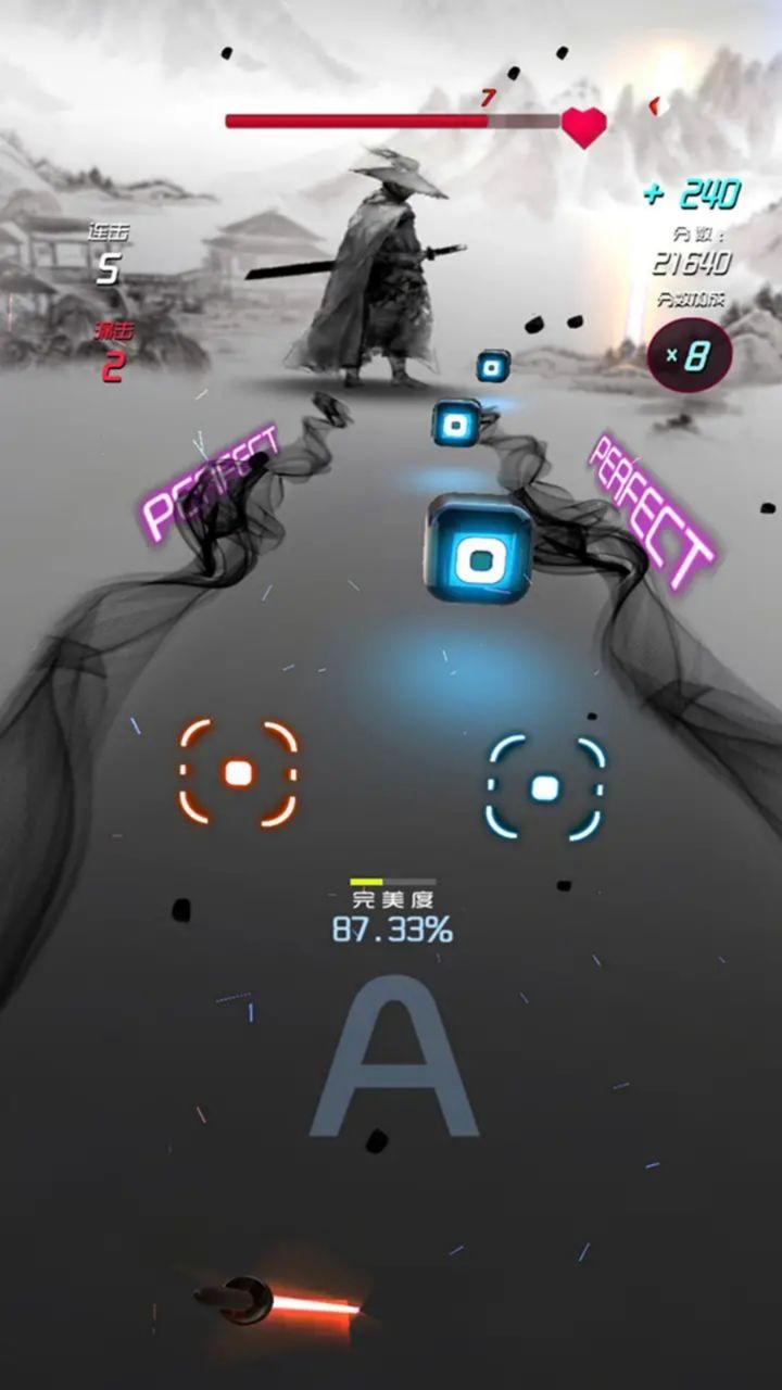 1.只需使用手中的武器来切割飞行的方块即可,操作简单直观,人人都能轻松上手,自由进行各种挑战;
