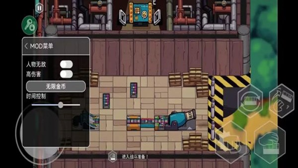 1、下载安装好这款坦克连接游戏之后,打开,这里可以先进行Mod菜单设置,如图所示。点击箭头所指的图标按钮,会唤起Mod菜单,然后可以将游戏开启人物无敌和高伤害模式