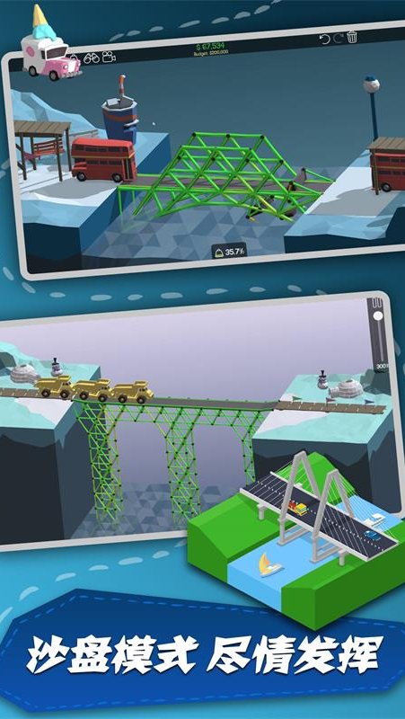 3. 创新设计:游戏中的桥梁设计十分创新,玩家可以通过自己的想象力,创造出独一无二的桥梁。