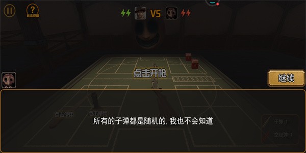 开枪思路:第一枪的局面五五开,这里还是建议第一枪对自己,若是空弹还能继续开枪,下一枪就对着恶魔(三分之二概率实弹)。