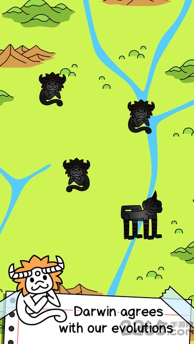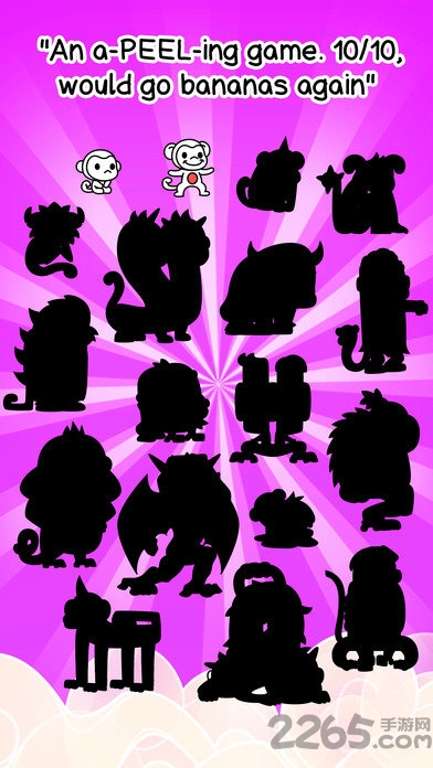 2、以猴子为主题的休闲养成类手机游戏,玩家可以将两只猴子拉到一起形成新的猴子。