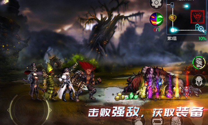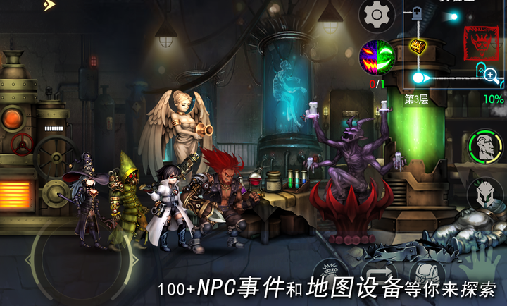 1. 结合Roguelike和水平策略,游戏中有7种类型的地下城,40多种怪物领袖和100多种怪物阵容,玩家将面临各种敌人挑战。