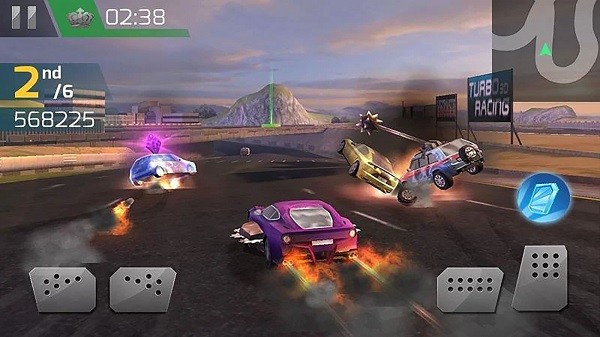 在游戏中,玩家将在赛道上驾驶汽车,不断撞击对手,并在比赛中摧毁对手的汽车。