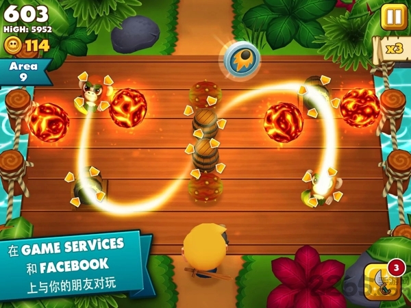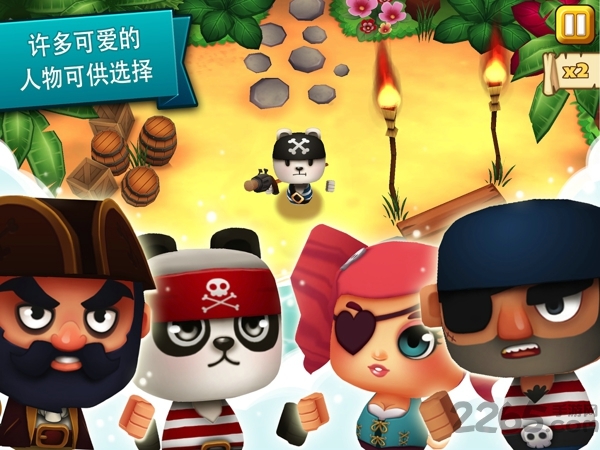 找回被盗的宝藏!挑选你最喜欢的海盗人物,向丛林进发,找到那些多管闲事的猴子。清除通过尽可能多的丛林区域;避开障碍物,消灭猴子以得到宝藏,同时还要避开香蕉和椰子攻击,并施展令人惊叹的连击!快节奏的手指触按动作和无穷无尽的排列静候你来体验。