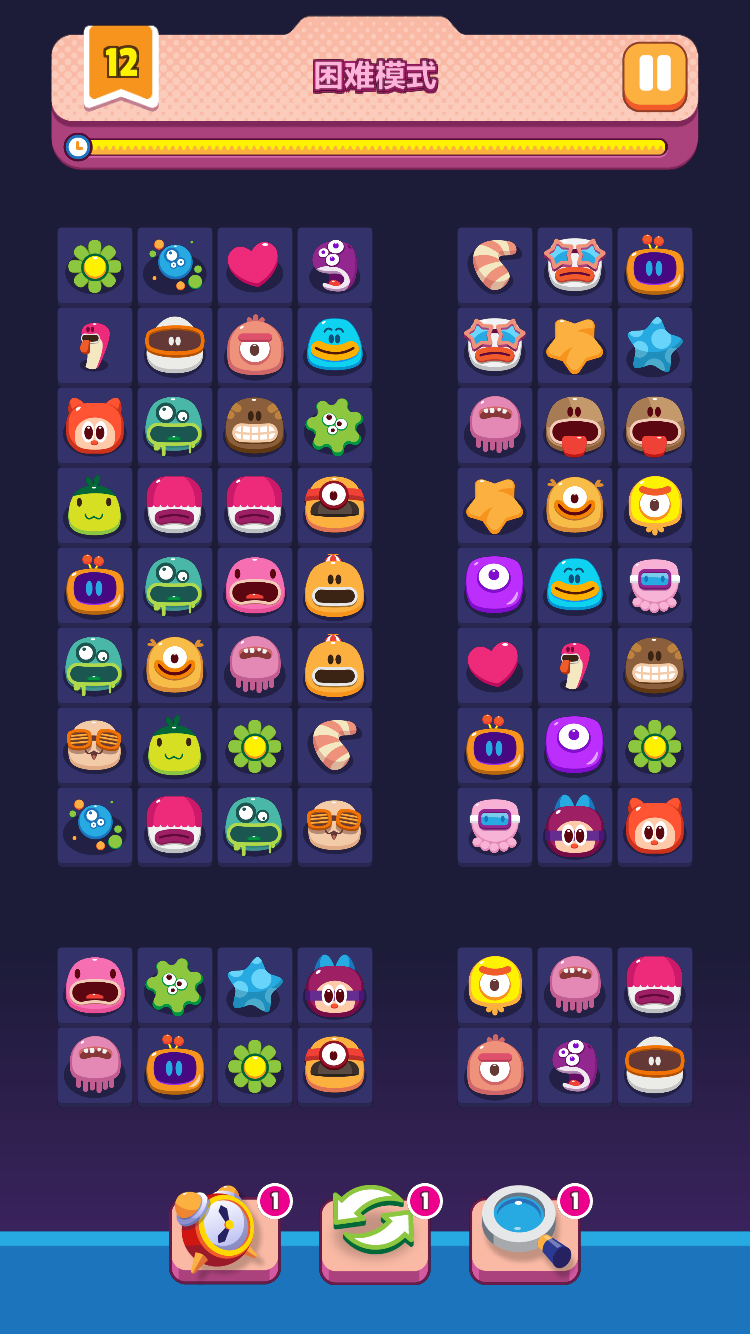 2、限时挑战:每一关都有时间限制,玩家需要尽快完成任务,消除尽可能多的图标以获得更高的分数;