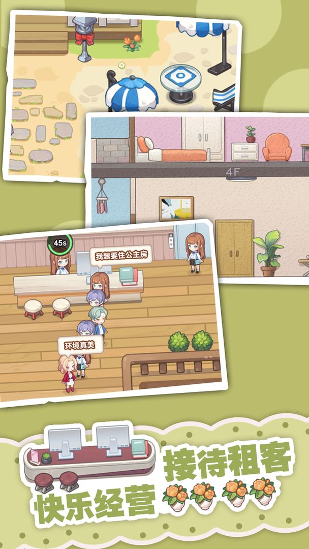 民宿模拟器是一款治愈系模拟经营手游,玩家将在游戏中经营一家民宿,装饰房间,制作美食,换装,合成......都可以在游戏中体验
