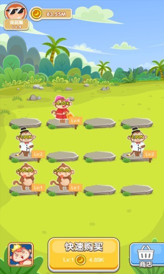 2、简单好玩的升级游戏,不同等级的猴子千奇百怪,等你收集;