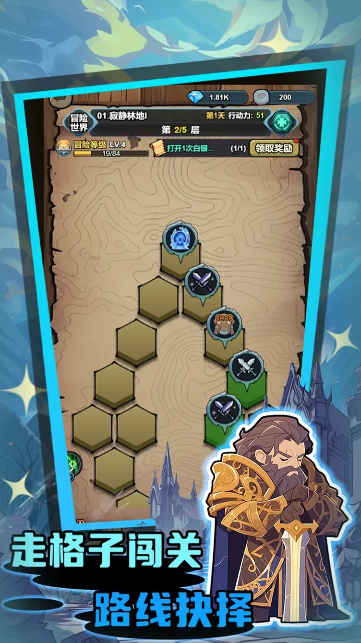 3、闯关的方式是走格子,玩家可以根据队伍的情况选择战斗路线。