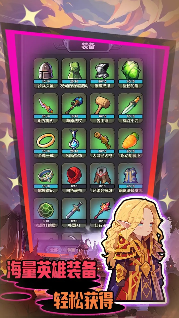 1、勇闯黑石塔通过抽卡获得各种英雄和道具。只要通过通关或者看广告完成任务,就可以免费获得金币和钻石。