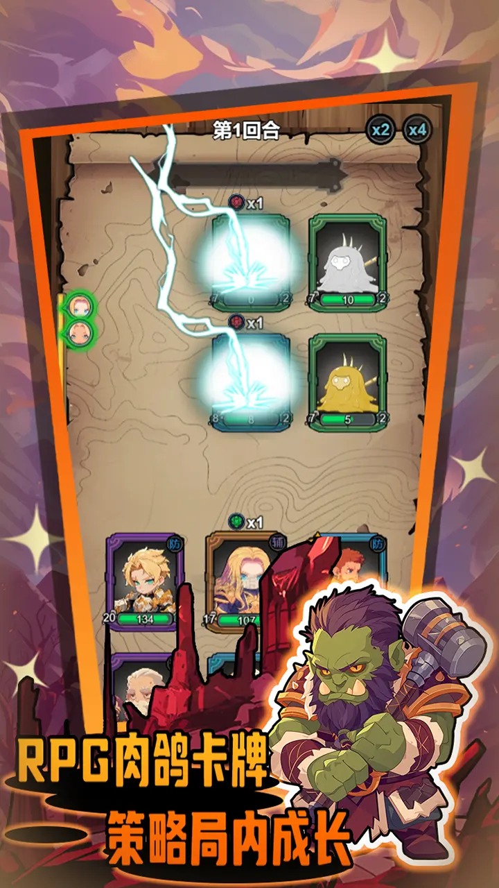 2、游戏中有很多卡牌等待玩家选择,每张卡牌都有不同的效果,基础属性等等。