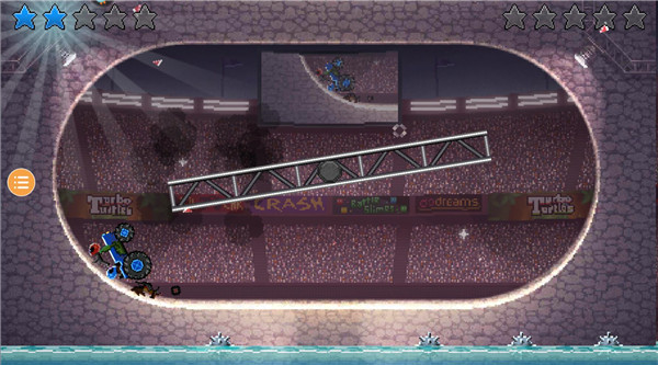 4、像这样在高塔上的场景,玩家需要先稳住赛车不要掉落下来,再去找机会撞击对方,一掉掉落那肯定赛车会解体,从而丢掉积分