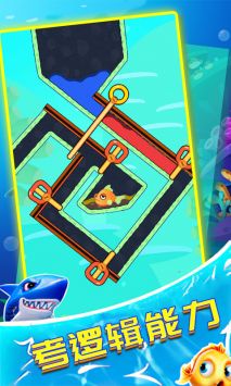 别针拯救小鱼儿:玩家需要通过拉动别针的位置和角度,创造出安全的路径,让小鱼儿顺利回到海里。