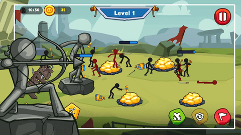 在游戏中带领你的士兵一起夺回领土,成为火柴人的领袖。