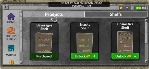 3. 超市购物:在超市购物中,玩家可以购买各种不同的物品来升级自己的加油站和房屋建筑。