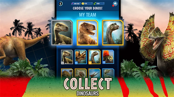 侏罗纪世界适者生存是一款以恐龙为题材的模拟生存类游戏,游戏背景是在侏罗纪时期,您将可以探索神秘又美丽的侏罗纪时期,在地图上寻找、收集稀有和令人惊叹的恐龙,打造出一支完美的恐龙队伍。游戏除了有收集、养成玩法之外还有合成玩法,如果您想创造更强大的新物种,那么就可以在实验室利用恐龙的DNA创造独特的混合恐龙。
