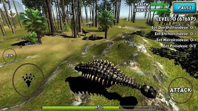恐龙侏罗纪模拟玩家在游戏中回到史前恐龙世界,游戏采用了3D引擎加强了真实感的同时也提高了游戏里恐龙的威严,游戏里的恐龙种类非常的多,还有许多新的地图等待玩家解锁。玩家可以选择其中一种进行游玩,不断成长,成为侏罗纪的霸主,你从恐龙幼崽可以逐渐成长为可怕的巨龙,在这个参考的世界中你自己也很有可能被其他的恐龙吃掉。