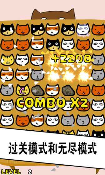 操作简单,玩法非常具有特色。游戏中可爱呆萌的猫星人让人耳目一新。游戏流畅的操作和炫酷的特效将带给你最劲爆的快感,最轻松的体验和最放松的感受。手指点击滑动萌猫,三个以上即可消除,快打出更多的combo吧!小编点评