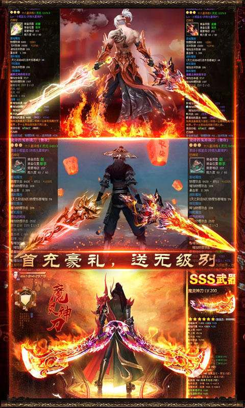 3、各种土豪特权无削减赠送!!福利超爽!!升级超快!真正的BT游戏!!