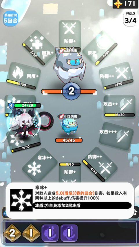5、当行动点使用完时,只能结束回合来进入敌人的回合(也可以主动结束回合)。
