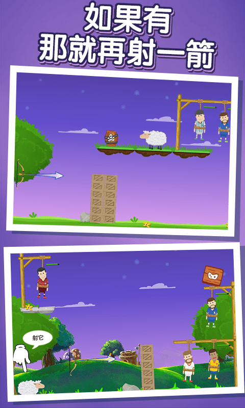 考验你箭术的时候到了,你的小伙伴身陷困境,这个时候你只有一把弓箭,你能拯救他们吗?《弓箭手拯救大作战》是一款玩法非常有趣的休闲益智游戏,在游戏中,你通过射箭来射中屏幕中指定的地方,这个时候,你的小伙伴被绑在架子上,你可千万不能手抖啊,不然你的小伙伴就么得了,感兴趣的小伙伴赶紧来点击下载吧!