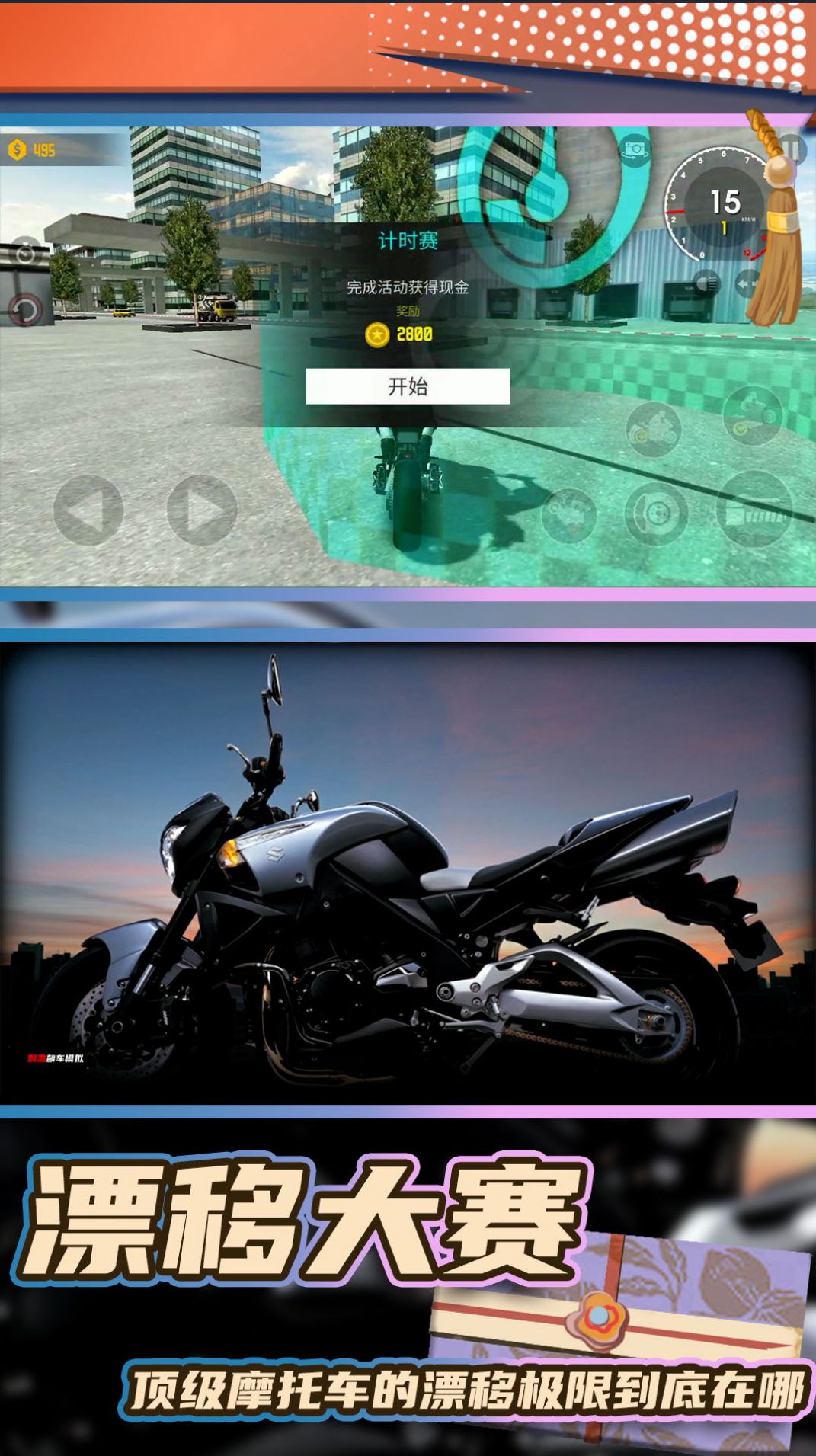 1、摩托车种类也相当丰富,逼真的游戏画面让玩家体验各种驾驶技能。