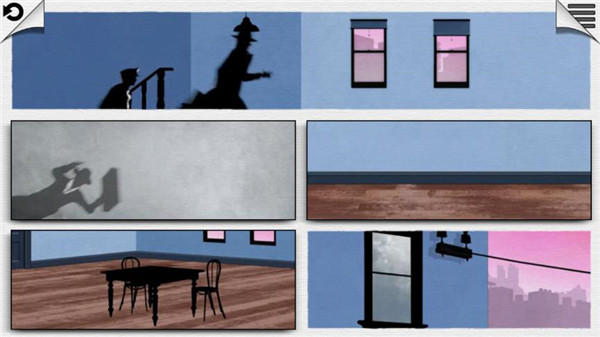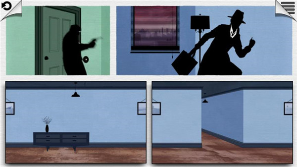 如下图所示调转图片位置,当警察开枪射击的时候,主人公飞身一跃,桌子侧翻在地挡住了子弹,主人公便可以趁此机会跳窗逃走!正字啊看小编此篇致命框架攻略的你是不是也被主人公矫健的身姿所折服!