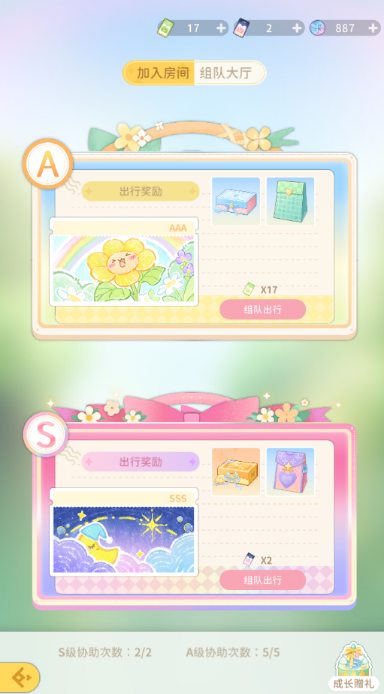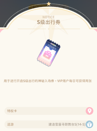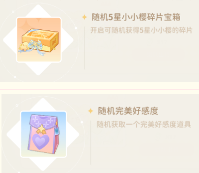 出行可以获得小小樱碎片/好感度道具等,出行分为A级和S级,A级出行可以获得三星小小樱碎片和普通好感度道具,S级则可以获得五星小小樱碎片和高级好感度道具。