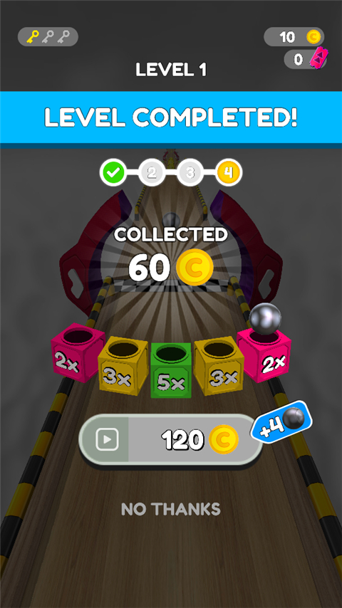 3.游戏还融入了丰富的道具和奖励系统。在保龄球运动的路上,玩家可以拾取到硬币和钥匙等道具,这些道具可以用来购买球体皮肤、解锁新的箱子或获得其他奖励。这种设计不仅增加了游戏的收集元素,也让玩家在闯关的过程中有更多的目标和动力。