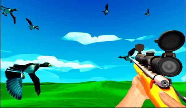 1、游戏画面很简单,一把枪,一只手,一片蓝天,一组鸭子,你要做的就是射这些鸭子。