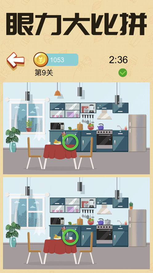 1.玩法简单:只要两张图片不在同一个地方用手指点击即可找到。