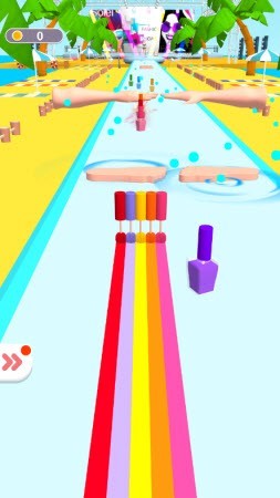 2.在游戏轨道上奔跑,收集更多的指甲油,达到游戏中的关卡目标。