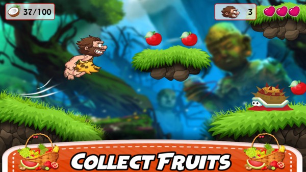 原始人森林探险游戏中,玩家将会体验到原汁原味的原始人的生活,操控魔性十足的原始人,在茂密的丛林中探险,通过在不同的平台上跳跃,避开前方各种危险的障碍物,收集各种食物,成功到达终点,就能顺利通关,在特定时间段避开陷阱,还能获得高额的分数奖励哦!
