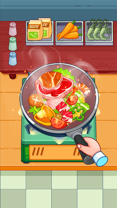 游戏模拟真实的烹饪过程,包括食材的准备、烹饪步骤和时间,让玩家感受到烹饪的乐趣和挑战。