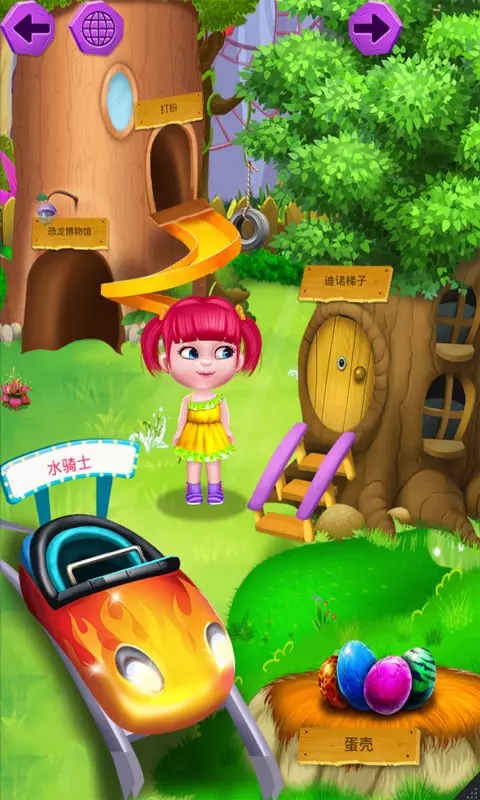 宝宝侏罗纪公园开张啦,快点进去游玩。在公园中你能见识到各种各样的恐龙,了解它们是怎么来的,它们的特点等等。你还能和恐龙们跳舞、在恐龙主题餐厅中品尝美食。